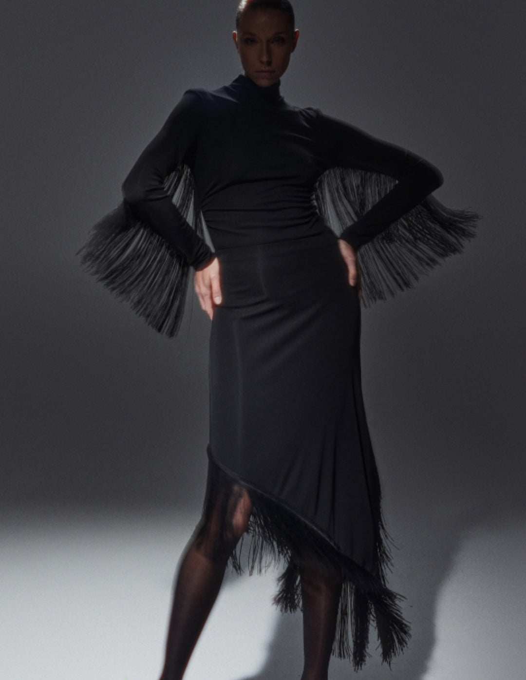 Body con collo alto.Dettaglio applicazione frange.Chiusura inferiore con bottoni.Vestibilità regolare, disponibile in taglia S/M, M/L.